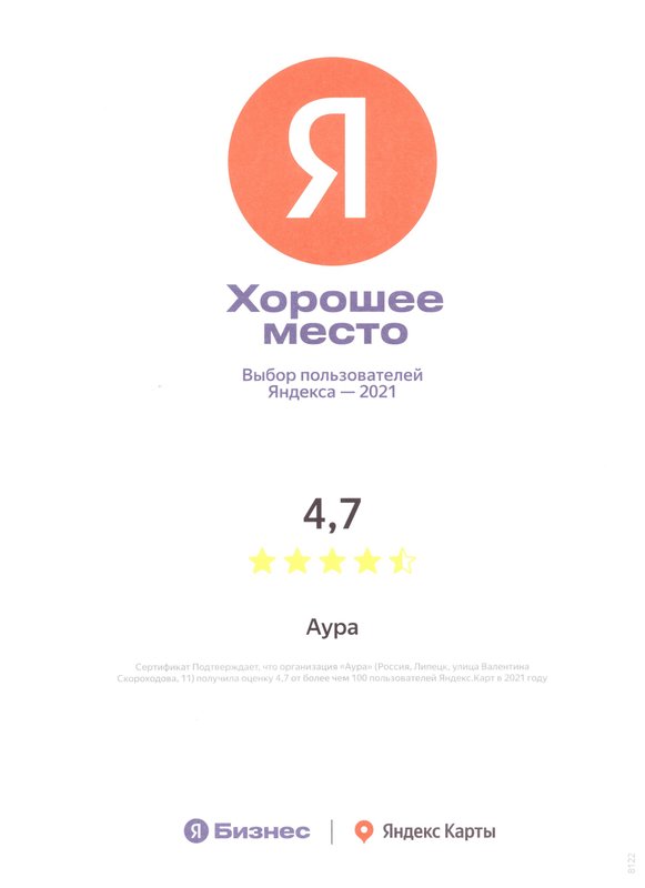 Отличная клиника экспертной косметологии «Аура» в Липецке! Помогли с лечением акне неодимовым лазером – результат есть. У них много крутых процедур, вроде фототерапии BBL и СМАС-лифтинга. Администратор Любовь Кокоткина очень приятная. Рекомендую, если ищете качественную косметологию!